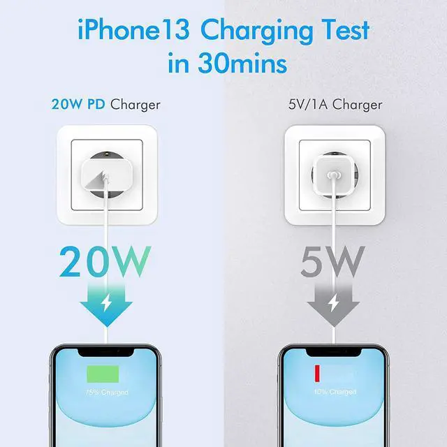 [20W PD New Fast iPhone Charger Block] 2Packs of USB C Wall Charger Adapter Plug Offer Fast Charging Up to 3X Faster Than a 5W Charger. Charge Your iPhone 14 up to 50% Capacity in Just 30 Minutes With the Original Cable. [Compatibility List] This New Fast Charger for iPhone is Designed for iWatch Series 9/8/7/Ultra | iPhone 15/ 15 Plus / 15 Pro / 15 Pro Max / iPhone 14/ 14 Plus / 14 Pro / 14 Pro Max / iPhone 13/ 13 Mini/ 13 Pro/ 13 Pro Max/ iPhone 12/ 12 Mini/ 12 Pro/ 12 Pro Max/11/11 Pro/11 Pro Max/iPhone SE 2020/X/XR/XS/XR/8/8 Plus iPad Switch Pixel 6 Pro Galaxy S21 and Later Devices.
