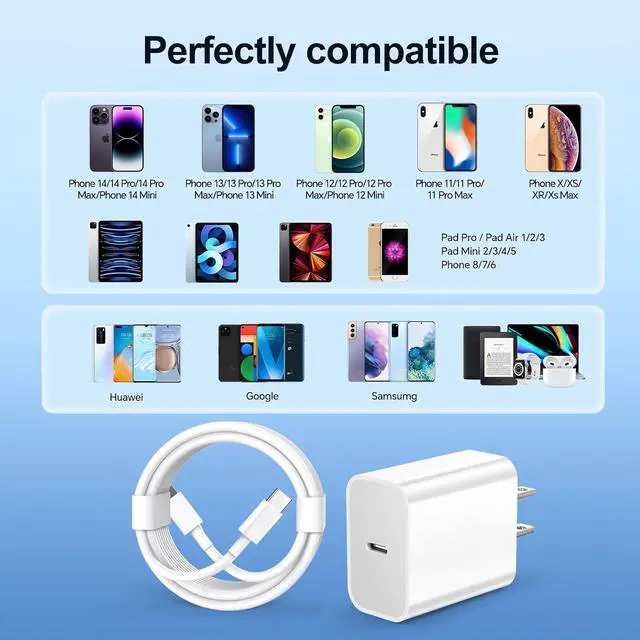Universal Compatibility: The phone charger is specially designed compatible with Phone 14/14 Pro/14 Pro Max/14 Plus/13/13 Mini/13 Pro/13 Pro Max /12/12 Mini/12 Pro/12 Pro Max Phone SE Phone 11/11 Pro/11 Pro Max Phone XS / XS Max / XR / X.