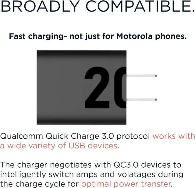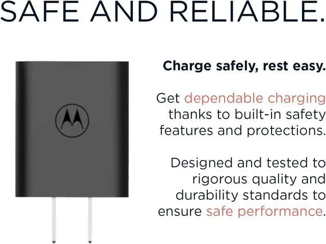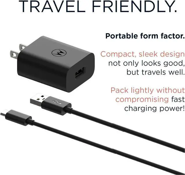 Motorola Original- TurboPower 20 MC-201 Charger with 3.3 ft USB-A to USB-C cable. In box charger for Moto G100Type C Turbo Charging! Fast charge a wide array of usb c phones like the Motorola Edge/Edge+/One5G/One 5G Ace/Moto G Power/G Stylus/G Stylus 5G/G Play/G Pure/G 5G/G7/G7 Power/G7 Optimo Maxx/G7 Supra/G6/G6 Plus/Z2/Z3/Z4/X4 and more! See Product DescriptionTravel Friendly Power- Compact and powerful this 20W QC 3.0 adapter is perfect for the home office or tripsSafe and Efficient- Enjoy a trusted fast charging experience thanks to built in intelligence that communicates with your device to ensure safe operation. Meets Level VI High Energy efficiency and is fully safety certified2 Year Warranty- Buy with confidence as your charger is backed by a 2 year manufacturer's warranty