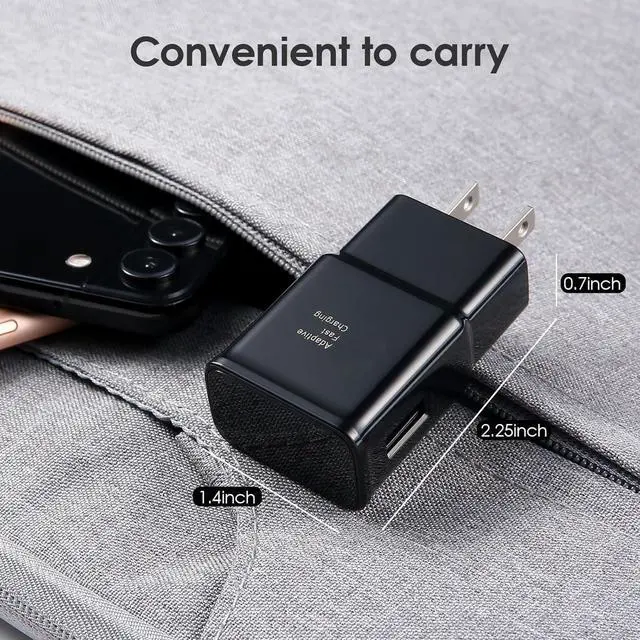 Fast Charging& High Efficiency: Adaptive Fast Charging Wall Charger supports fast charger for Phones QC 3.0 / 2.0 and Adaptive Fast Charging (AFC) compatible devices. Allow you to charge your phones from 0% to 50% in just 30-40 minutes much faster than standard fast charger. Save time for charging. Quick Charging Broad CompatibilityCompatible with Galaxy S24/S24+/S24Ultra/S23/S23+/S23Ultra/S22/S22+/S22Ultra/S21 S21+ S21Ultra Note 20 S10 S10+ Plus S10 5G S20 S9 S9+ Plus S8 S8+ Plus / Active Note 10 Note 10 plus LG G5 G6 G7 V20 V30 ThinQ Plus and other fast charger 2. 0 (QC2. 0) supported devices. Safety GuaranteeLaoFas fast wall chargers built-in safeguards that fully protect against over-current over-charging and over-heating charging. It have no any risk of overheating or damaging devices keep a safe but fast charging. Perfect Design4-Pack USB Wall Charger Adapters are lightweight compact design that fits your storage requirements as Galaxy fast charger for using at home travel office or business trip. What You Get4 x Adaptive Fast Charging Adapter (charger cable is not included). Any problems please contact us and we will reply within 24 hours.