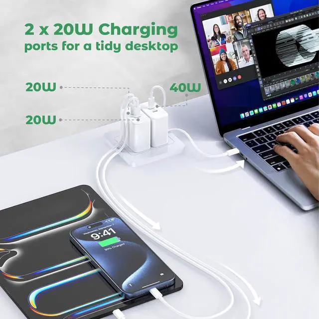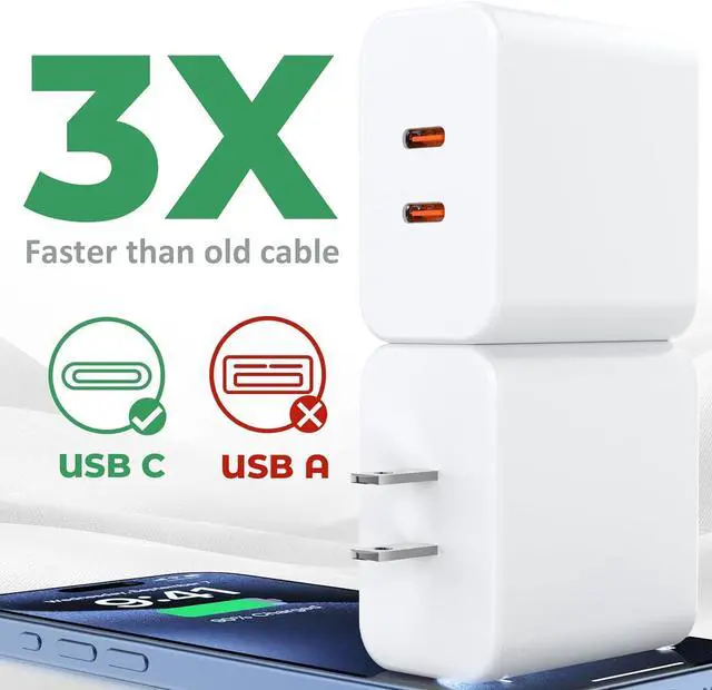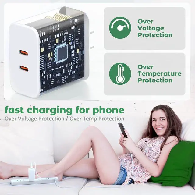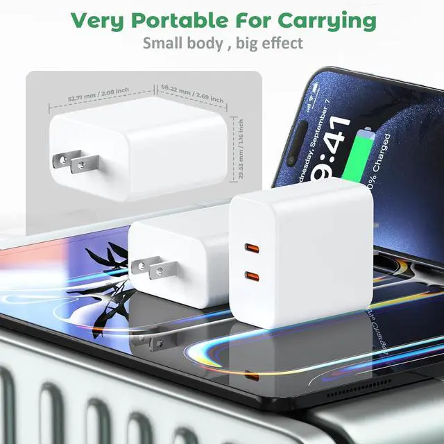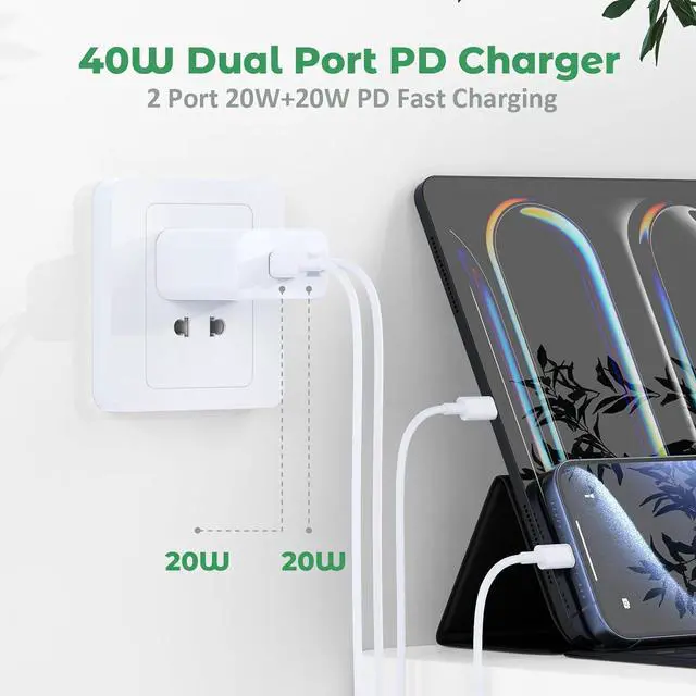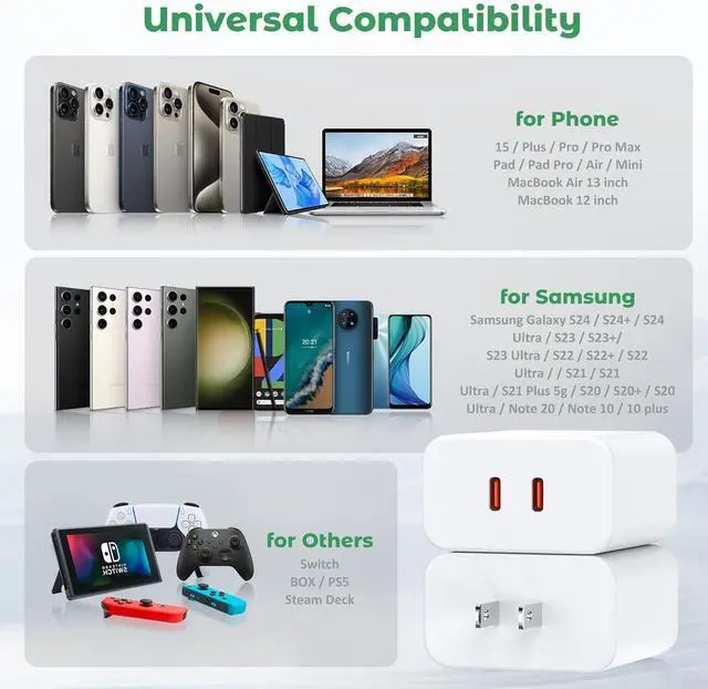 Charger Multiport: New Upgraded Design - one charger block with Dual USB-C ports. Allow users to charge phone tablet laptop and headphones simultaneously to minimize waiting timeFor