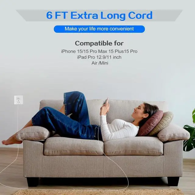 It also for Galaxy S25 Ultra/S24/S23/S22/S 21.6FT USB C to USB C Charger Fast Charging Cable CordEnjoy the Convenience of our Super Fasr 6FT Long USB C to USB C Charger Cable Cord Perfectly Tailored for Your iPhone 17 16 15 Fast Charging Needs. Equipped With an intelligent Chip it Ensures a rapid 3A Charging Speed. The Cable's Reversible Design Allows for Effortless Plug-in While Enabling Efficient 480Mbps Data Syncing. With its Generous 6FT Length You'll Have the Freedom to Move Around While Keeping Your Device Powered Up. Superior Safety iPhone 17 16 15 Fast Wall Charger AdapterThese 20W USB C iPhone 17 16 15 Wall Charger Block for iPhone 17 16 15 has Multipotent Safety System Ensures Complete Protection for Your Lightning Devices.