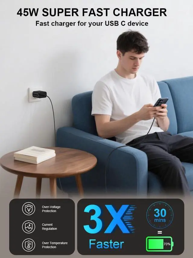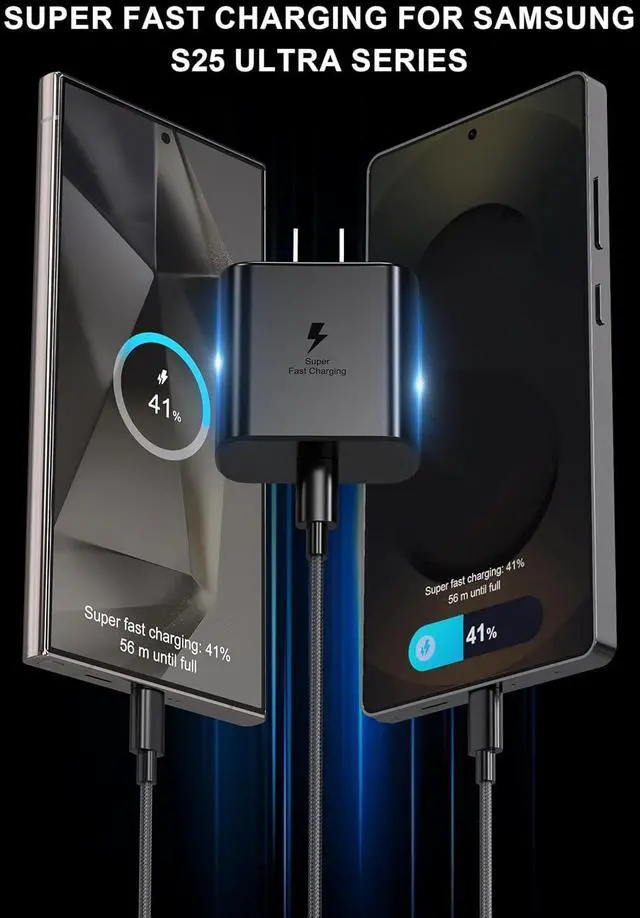 Universal Compatibility Works seamlessly with Super Fast Charging 2.0 (45W) and 1.0 (25W) plus PD fast charging for iPhone 16/15 Pro Max iPad Pro MacBook Google Pixel and more. Officially tested for Galaxy S25/S24/S23/S22 Ultra Tab S9/S8 and future USB-C devices. Advanced Safety & Reliability Built-in safeguards protect against overheating overcurrent and short circuits. Intelligent IC automatically adjusts voltage and stops charging at 100% to extend battery life. Certified for safety with ETL/FCC/CE standards. 3-Year Warranty & Dual Charger Kit Get 2x 45W chargers + 2x 10FT braided cables ideal for home travel or sharing.