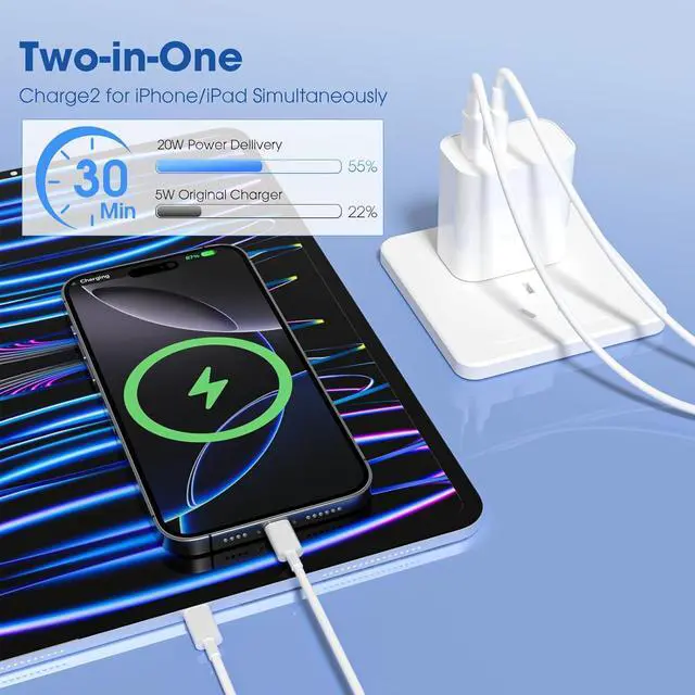 Comprehensive Protection&Compact Lightweight: Safety is our top priority. That's why our iPhone fast chargers are equipped with multiple safety systems including overcharge high-voltage and overcurrent protection. We've also incorporated temperature control and other important features to ensure a safe charge at all times. Our fast chargers are incredibly compact and portable slipping easily into your pocket or bag without taking up too much space. The two-in-one USB-C charging plug ensures exceptional portability wherever you go. Perfect for home work and vacation.