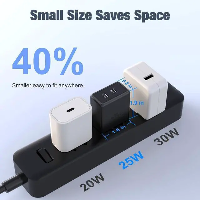 Note: 25W is only used when using one USB C port. 15W when using two PD ports simultaneouslyCharge Your Phone SafelyBuilt-in intelligent chip can automatically identify the device matching current and stop when the battery is full. The shell is made of high-quality ABS material overcurrent overvoltage and short circuit protection effectively protecting the device from damageCompact and