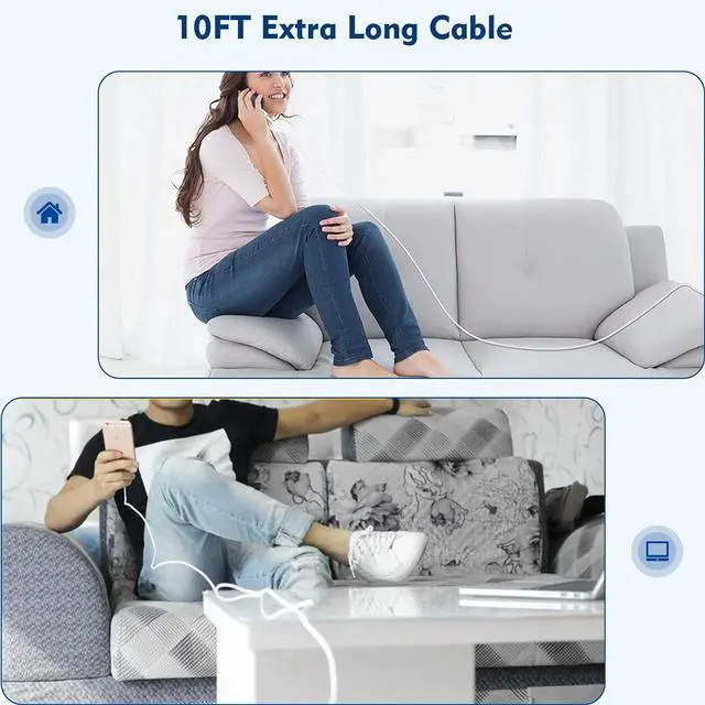 [Durable and Long iPhone Charger Cord 10 ft]10 ft iPhone charger cable Charger keep us to move around and stay iPhone plugged in. No matter how far you are from the wall plug for Devices you can easily charge your iPhone. The cable made of PVC material is durable and not easy to wind[ Approved MFi Certified] MFi Certified charging cable can charge your iPhone 100% without error pop-up warning messages. During charging the iPhone charger cable will be cut off immediately when the voltage output is abnormal to ensure safety[Mini Size iPhone Charger Block]The design of iPhone charger cube is small and does not occupy space which is convenient to carry out.