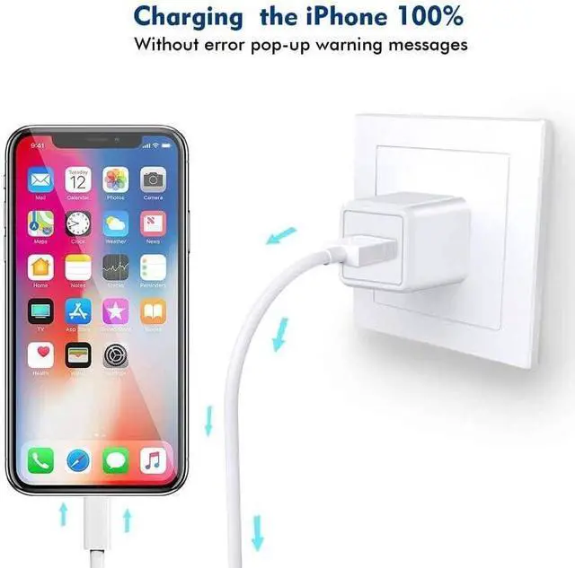 It contains smart chip to protect your device from damage when charging your iPhone prevent over-voltage and overheating etc[Applicable Equipment] iPhone charger cable and wall plug is compatible with iPhone 14/14 Pro/14 Pro Max/14 Plus/ iPhone 13/13 Pro/13 Pro Max/13 mini/ iPhone 12/12 Pro/12 Pro Max/12 mini/ iPhone 11/11 Pro/11 Pro Max/XS/XS Max/XR/X/8/8 Plus/7/7 Plus/6/6 Plus/6S/6S Plus/5/5C/5S/SE/SE 2020 iPad AirPods iPod touch[What You Get] 2Pack light and sturdy iPhone charger with wall plug + 2Pack extra long iPhone charger cord 10ft.