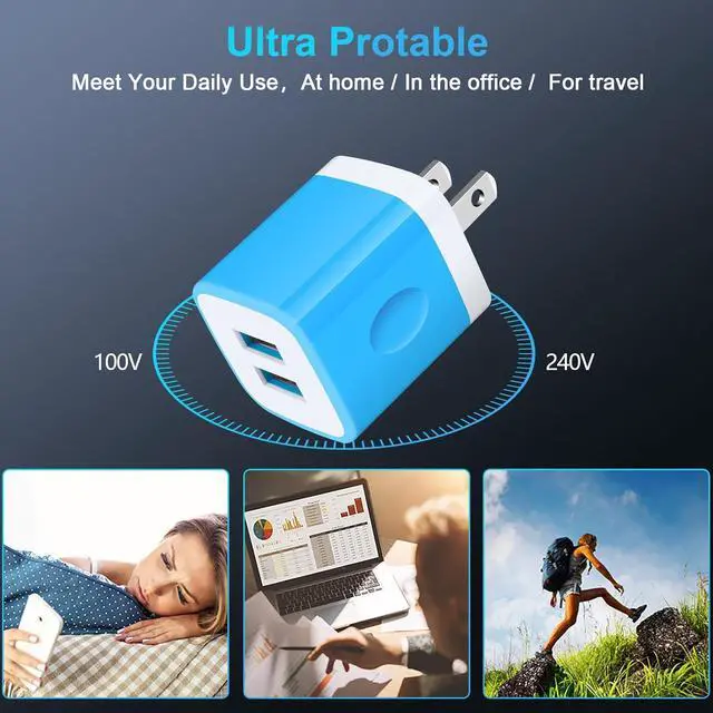 Size for Travel: U. S. & World Standard Charger plug with multi-protect safety system to ensure your devices dont overcharge and is resistant to damage by high temperatures. Lightweight and portable design wont take up extra space. You can place one in your office home and one for travel or wherever you want to recharge High quality chargers can meet all of your demands.? Work for