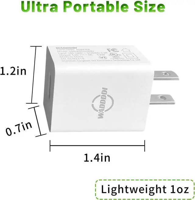Portable: Standard USB Wall charger is small and lightweight weight only 1oz portable for using in home and office travel put in your bag during business trips or vacations.