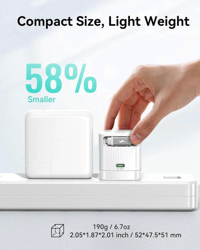Travel Companion: Weighing only 6.70 ounces this fast wall charger features an ultra-compact and lightweight design that is 58% smaller than the original 67W charger the durable ABS shell prevents scratches and has foldable prongsWhat youll