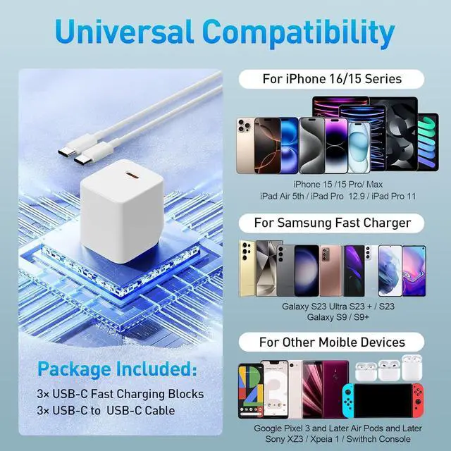 Series: 30W PD USB type C charger adopts the latest PD 3.0 fast charging technology which provides a maximum output power of 30 watts and the charging speed is much faster than that of a standard USB charger. Charge the iPhone17/16/15 series to 80% within 30 minutes and the iPad series to 60% which is 3 times faster than the original 5w chargerMultiple