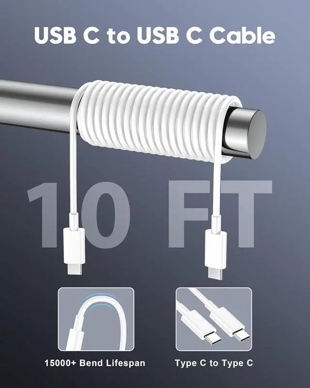 You Get: 2-Pack 45W USB-C Wall Charger 2-Pack 10FT Long USB C to USB C Charging Cable Cord (White) 12-month replacement. Compact design and easy to carry take the compact dual USB-C charger with you or family wherever you go ensuring that you never run out of power when you need it the most
