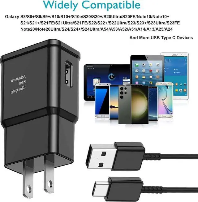 Output: 9V/ 1.67A or 5V/2A)?? Safety DesignUL Certified. Multiple built-in safeguards and intelligent IC identification technology protect against short circuit over-current over-voltage over-heating and over-charging. Automatically stops charging when battery capacity is full to ensure your device safety and long lifetime.?? Widely CompatibilityCompatible with Galaxy S25 S25 Ultra S25+ S24 S24 Ultra S24+ S24 FE S23 S23+ S23 Ultra S23 FE S22 S22+ S22 Ultra S21 S21 Ultra S21+ S21 FE S20 S20+ S20 Ultra S20 FE S10 S10e S10+ S9 S9+ S8 S8+ A16 A15 A14 A13 A55 A54 A53 A52 A05 A04 A03 A25 A24 A35 A34 C55 Note 10 Note 10+ Note 20 Note 20 Ultra Z Fold2 Z Flip2 Z Fold3 Z Flip3 Z Fold4 Z Flip4 Z Fold5 Z Flip5 Z Fold6 Z Flip6 W25 W25 Flip W24 W24 Flip W23 W23 Flip W22 W21 W20 Google Pixel 9 Pixel 9 Pro Pixel 8 Pixel 8 Pro Pixel 7 Pixel 7 Pro Pixel 6 Pixel 5 Pixel 4 Pixel 3 Pixel 2 LG G8 LG G7 LG G6 LG G5 And More USB Type C Devices.?? Durable 6.6 ft Fast Charging USB Type C Cable CordPremium thickened cable and tangle free design to withstand up to 10 000 bends.