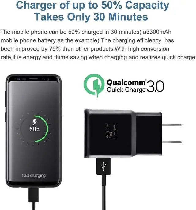 Support fast charging output 36W/12V/3A (max) data transfer speeds up to 480Mbps. Extra 6.6 ft long perfect for office living room bedroom travel etc. without space restrictions.?? What You Get1-Pack 15W Adaptive Fast Charging USB Wall Charger Block with 1-Pack 6.6 ft USB A to Type C Cable Cord.
