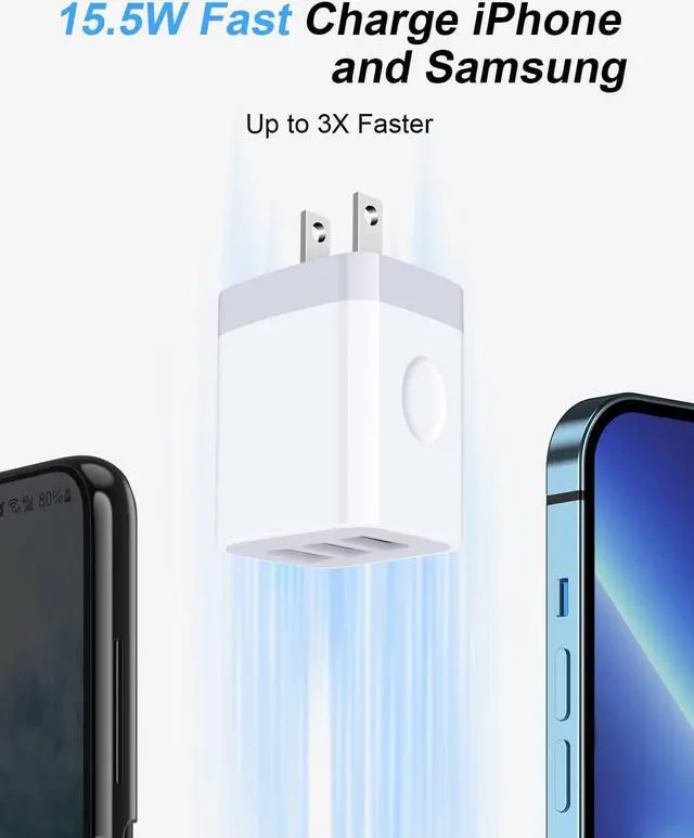 Premium Performance3-USB plug output with a total current of 5V/ 3.1A and input with 100-240V enables you to charge three mobile devices simultaneously at high speed. Compatible with iPhone 17 16 15 14 13 12 Pro Max SE 2020 11 10 X XR XS MAX 8Plus 7 Plus 6 Galaxy S25 S24 S23 S22 Ultra S22+ S21+ 5G S20 FE S10 S9 S8 J7 J3 J8 Note 20 A12 13 A14 A15 A16 A17 A71 A73 A51 A72 Google Pixel 10 9 8 7 Pro 7a 7 6a 6 Pro 5 4a 4xl 4 3a xl 3 2a LG HTC Oneplus Kindle Fire 10 9 8 PS5 etc.