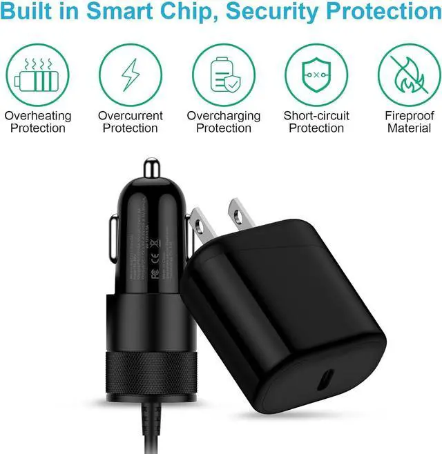 Super Fast ChargingUSB C fast charge charge phone up to 60% in just 30 minutes compatible with QC/PD/PPS charging protocolUniversal CompatibilityUSB type c cable compatible for iPhone Air 17 17 Pro max 17 Pro 16e 16 16 Pro Max 16 Pro 16 Plus 15 15 Pro Max 15 Pro 15 Plus Galaxy S25 S24 S23 S22 S21 S20 5G 5FE Ultra Edge Plus series S10 S10e S9 S8 Note 20 10 9 8 Ultra Plus series Moto Stylus 2022 2023 2024 Edge LG Google Pixel earphones power bank tablets and other type-c charging port devicesSafety and ReliabilityBoth car charger and wall charger built in smart chip made of fireproof material with high safety standard protect smartphones against overheating over current overcharging and short-circuit.