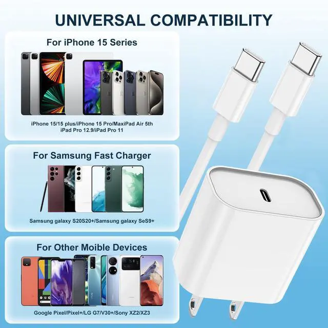 Included Contents: The product includes 1 Pack 20W fast charging plugs and 1 Pack 10-feet Type C to C cables along with our round-the-clock friendly customer support ensuring a pleasant shopping experience for you.