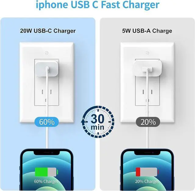 20W Fast Charger AdapteriPhone Fast Charger equipped PD 3.0 Quick-Charge USB C port provides Max 20W output power charge your device up to 3x faster than original 5W charger charging your iPhone 17 16 up to 50% in just 30 minutes saving over 1.5 hrs for you. Providing super-fast charging speed for your iPhone device help to enjoy your intelligent life. Safe and ReliableThe iPhone chargers are certified for safety and suitable for both US and international electrical standards. With built-in intelligent chip USB C PD fast power adapter provides over-current over-voltage over-heat and short-circuit protection for your devices to ensure safer charging.