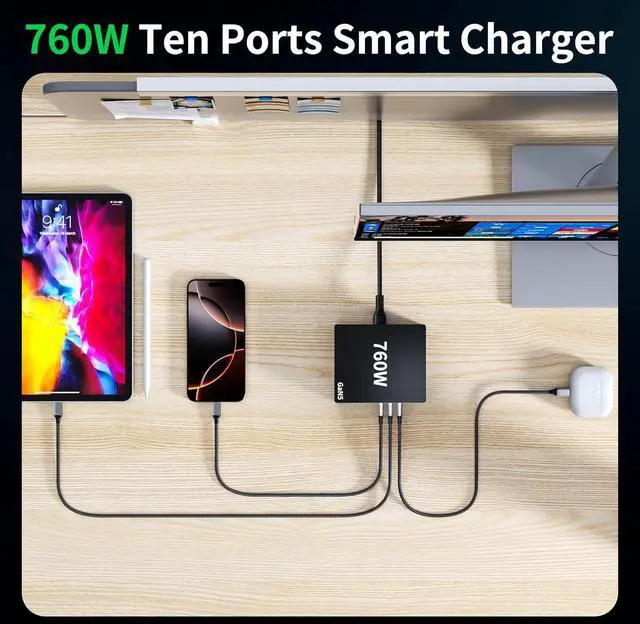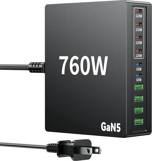 What You Get: 760W USB C Charger (800W 10 Ports GaN5) 5.5FT power cord and 100W charging line welcome guide 24-month warranty and our friendly customer service.