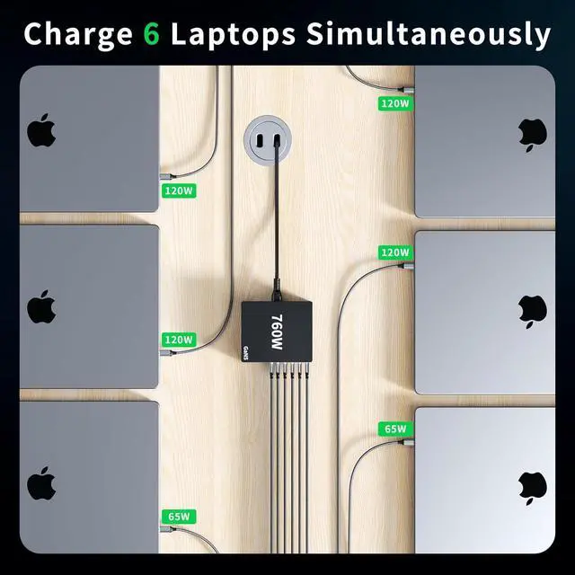Safe Laptop Charger: Upgraded GaN 5 technology. built-in multi-protection system and premium microchips and automatic switch-off after full charge Protection against short circuit overheating overvoltage and overcharging Reduce design size reduce operating heat Power up your 16-inch MacBook Pro to 50% in just 25 minutes using the first USB-C port which delivers 120W to significantly boost your productivity. also can charge 6 laptop in the same time!