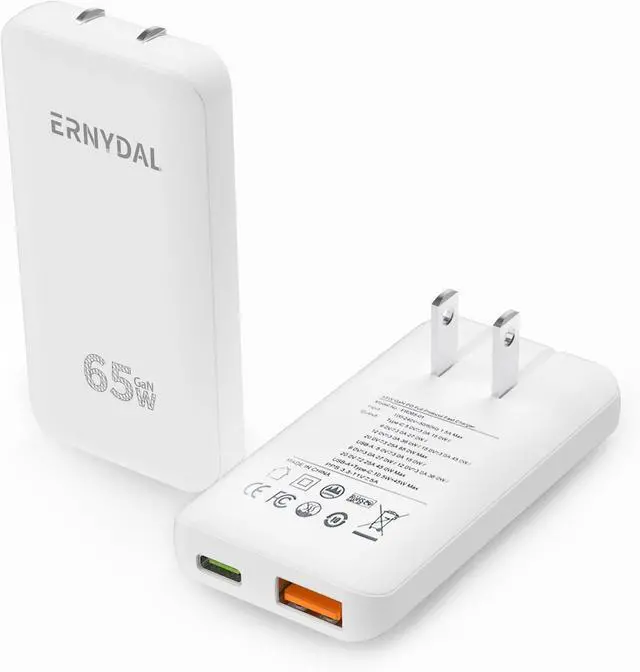 Ultra Thin: The 65w usb c charger only 0.55 inches thick smaller than bank cards compact and portable easy to carry during travel; Home use does not take up space and is very convenient to plug into the sockets in the kitchen behind the sofa or on the walls of the roomDual