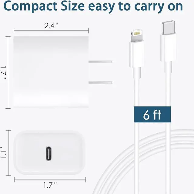 The tangle-free 6-foot cable provides convenient charging and syncing at home in the office or while traveling - perfect for use in bed hotel rooms and more. Universal CompatibilityThe 20W PD charger provides fast charging for i Phone 14/14 Plus/14 Pro/14 Pro Max/13/13 Pro/13 Pro Max/12/12 Pro/12 Pro Max/12 mini/11/11 Pro/11 Pro Max/XR/XS/XS Max/X/8/8 Plus and i Pad Pro and standard charging for i Phone 7/7 Plus/6s/6s Plus/6/6 Plus/SE/5s/5/5c. What You Get2 pack 20W USB-C charger block and 2 pack 6ft fast charging cord.