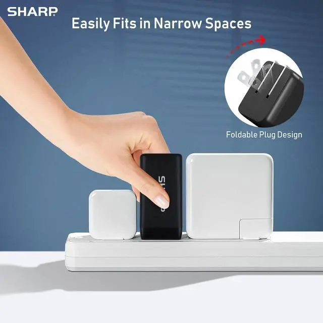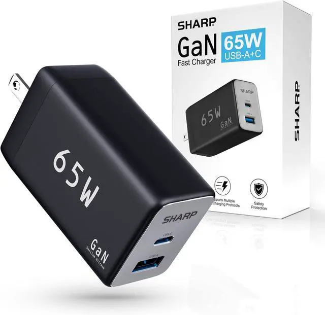 Small and Compact: GaN Technology allows us to make the Sharp 65W charger smaller than traditional 65W chargers. Take it with you wherever you go and always have access to charge when you need it! Designed with foldable plugs for a compact design for easy portability.