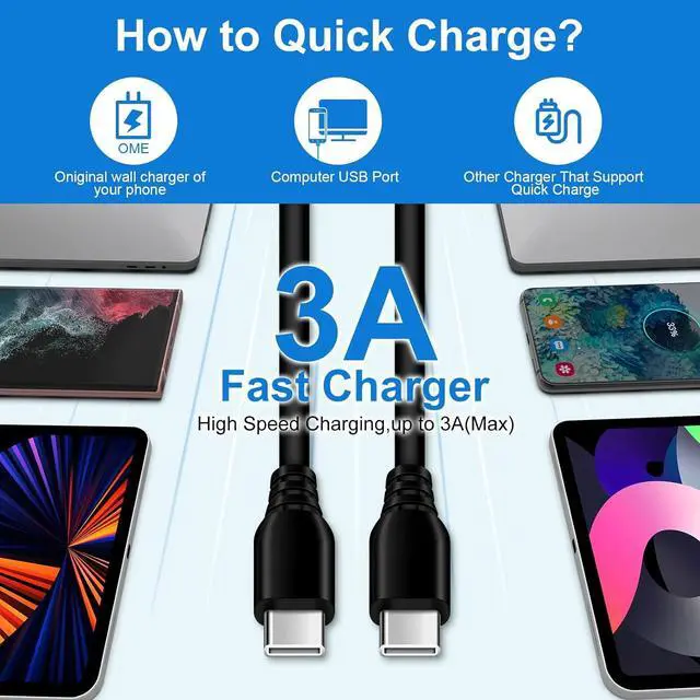 C Cable: 6FT USB C to USB C s24 charging cord combined with 25W super fast charger let you can transfer data speed up to 480Mb/s friendly reversible usb-c port design Rapid Charging at 3A Maximum. Use 60W tablet charger cord also charges your laptop but need a above 30w USB C Fast Charger Adapter.
