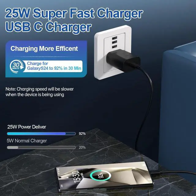Fast Charger for 25W Charger with 5FT USB Type C Cable Fast Charging for Galaxy Phone S25/S24/S23/S22/S21/S20/Note20/Note10/Note9/Ultra/Galaxy Tab/S9/S8/Plus/Black