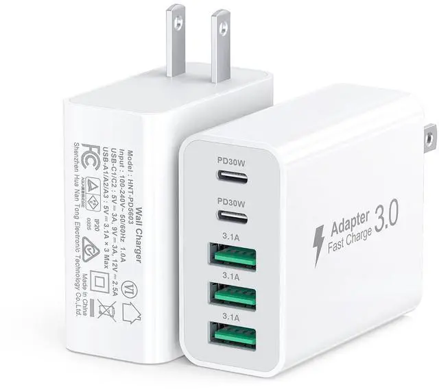 USB-C Port Charger: Featuring two 30W USB-C ports and three USB-A ports this latest USB wall charger can quickly charge up to five devices. When using both Type-C ports simultaneously the maximum output power reaches 60W ensuring efficient charging and reducing waiting time. Additionally this fast-charging charger can replace five separate wall outlets saving space and reducing clutter.