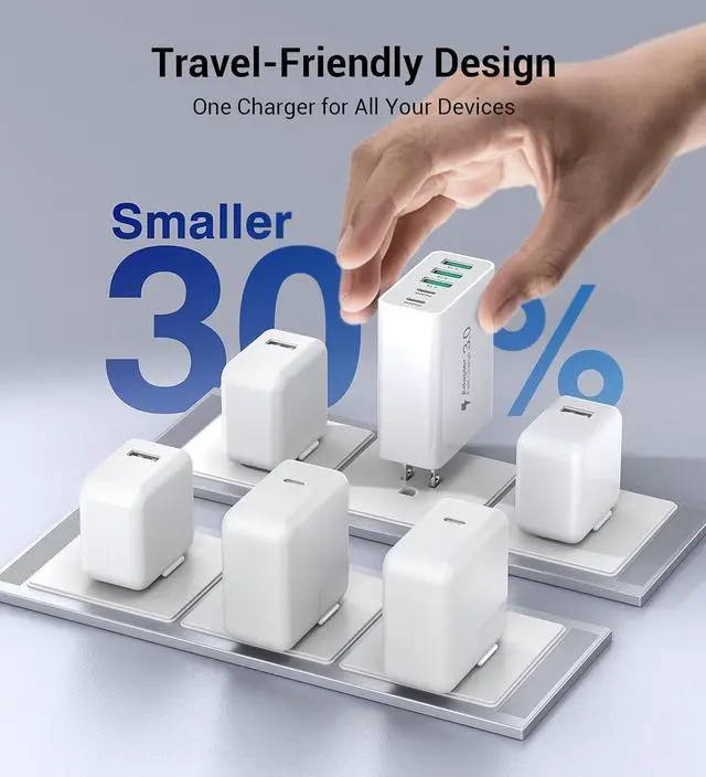 Universal Compatibility Wall Plug: Due to the special 5-port the USB charger is compatible with almost all electronic devices charging adapter for iPhone 17/17 Pro/17 Pro Max/17 Air/16/16 Pro/16 Pro Max/15 Plus/15/15 Pro/15 Pro Max/14/14 Pro/14 Pro Max/13/13 Mini/13 Pro Max/12/12 Pro Max/12 Pro Max/12 Mini/SE 2020/11/11 Pro/11 Pro Max/XR/XS/X iPad Air/Pro/Mini Galaxy S22/S21/S20/S10/S9/S8/A12/A13/A22/A32/A52/A53/A71/Note 20 10 Tablets LG Google Pixel and other digital devices compatible. Compact and Portable Phone