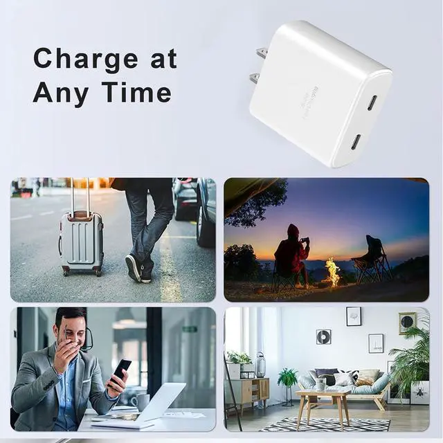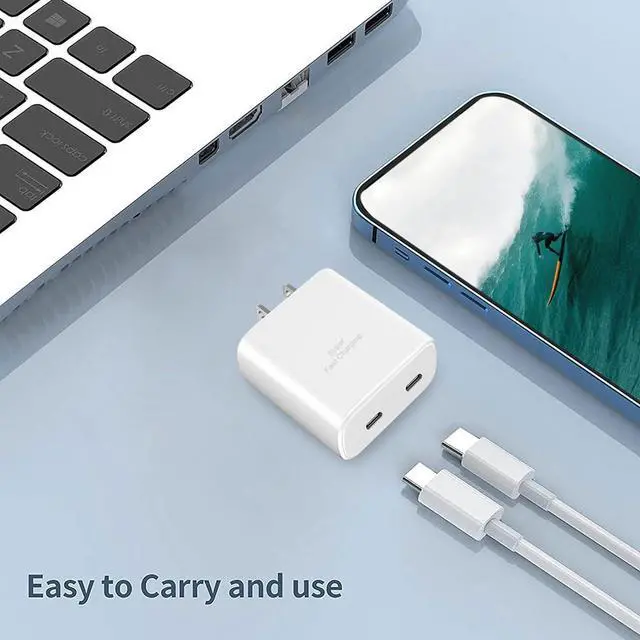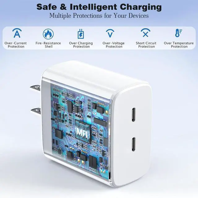 Premium PerformanceUSB C Fast Charger Block comes with two independent output ports. Dual Ports Plug Wall Charger is capable of charging two of your mobile devices at the same time and each port guarantees full-speed charging capability ensuring that you don't have to make any compromises on charging efficiency. With the dual port design you will experience unprecedented convenience and effectively save valuable timeSafe Charging Dual Port USB-C Charger Block is made of PC fireproof material and is equipped with multiple protections such as output short circuit protection and built-in over-current over-voltage and over-heating protection. The USB C Fast Charger Block has undergone rigorous testing to ensure a longer service life and safer charging.