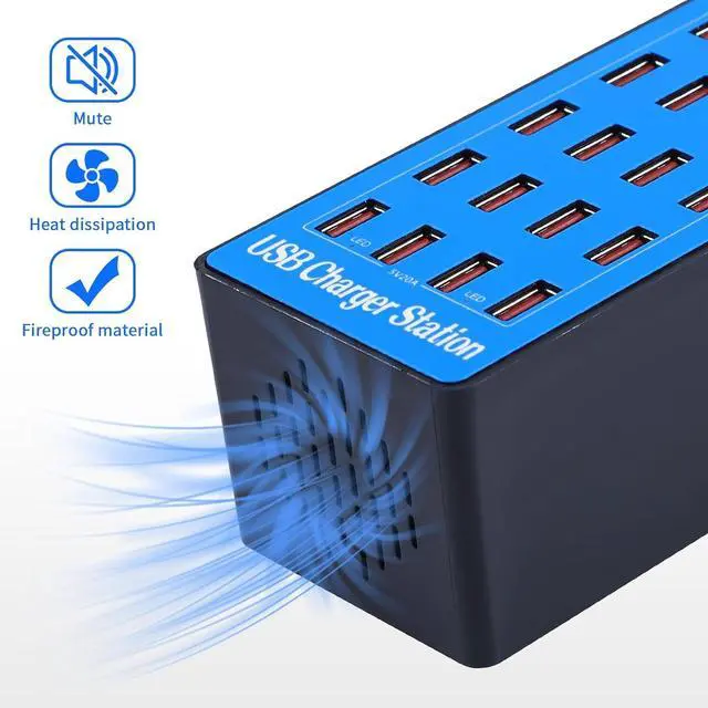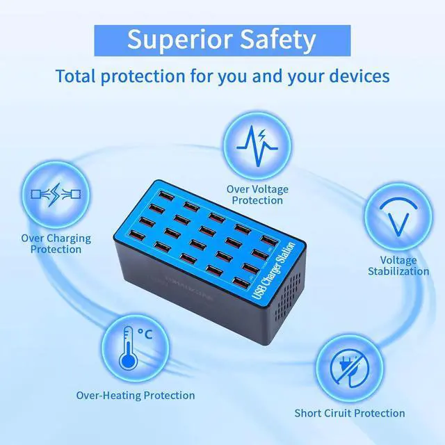High-Quality and Safe: Made with fireproof PC materials this multiple USB charger station includes protections against overcharge overload overcurrent and overheating thanks to its intelligent chip and efficient heat dissipation.