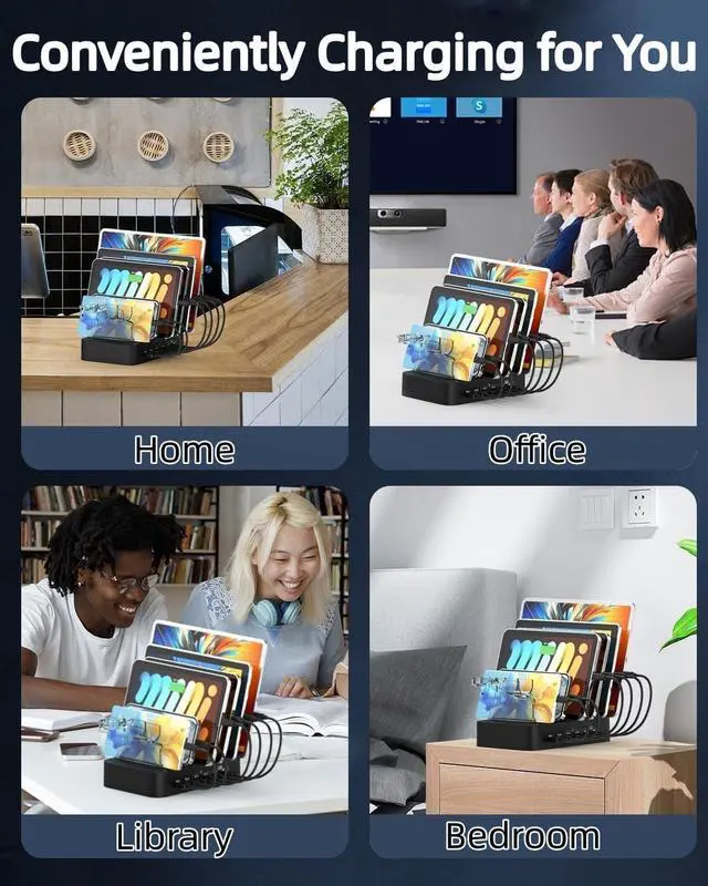 Multiple Safety Protection This 6 port USB charging station for multiple devices it is made of premium flame-retardant ABS material. The multi charger with short-circuit overheat and overcharge protection this 6 port USB charger will make all your devices more safer and more efficient to chargeWide Compatibility Multi Port ChargerThis charging Station 6 port USB charger and it Suitable for Type-A to Type-C cables. Compatible for iPhone17/iPhone16/ 15/iPhone15 pro/iPhone 15 max/iPhone 15 mini/iPhone 14/14Max/ 14Pro/ 14Pro Max iPhone 13/13Pro/13 Pro Max/iPhone 13 mini iPhone 12 /12 Pro/12 Pro Max/iPhone SE. MacBook Pro 13 inch Macbook Air 13 MacBook 12 inch MacBook series.