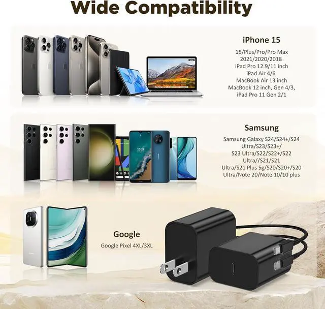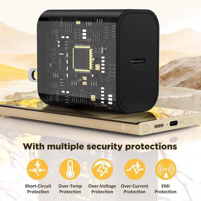 45W USB C Charger Offers Multiple Safeguards Automatically. Built-in Intelligent Chip Inside with overcharge protection stable current protection automatic switching and battery protection.? Universal CompatibilityThis type c charger fast charging is designed for devices delivering your desired charging speed to Galaxy S24 Ultra / S24+ / S24 / S23 Ultra / S23+ / S23 / S22 Ultra / S22+ / S22 / S21/ S21+ / S21 Ultra / Z Flip / S10 series/ S9 series/ S8 series / Note 20 series / 10 series / 9 / Galaxy Tab S7 / S7+ / Tab A series / Galaxy Buds / Galaxy Watch and more.