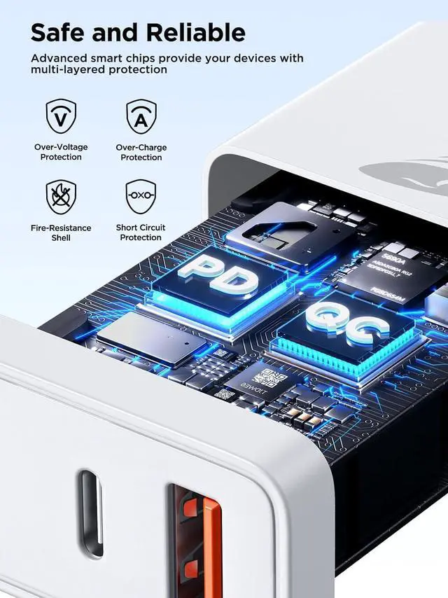 Safety: The charging blocks USB-c fast charging block features a built-in smart chip with a multi-layered safety protection system effectively preventing issues such as overheating overvoltage overcurrent overcharging and short circuits. The charging blocks multiple ports charger automatically shuts off when fully charged effectively extending the device's lifespanCompact and