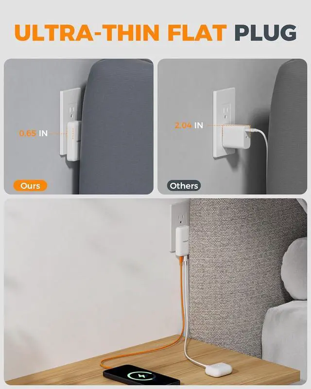 Foldable Design: This 35W USB C charger block features a sleek ultra-thin profile and a foldable plug making it the travel companion. Flat wall charger compact size easily fits into pockets bags or tight spaces ensuring convenience on the go.