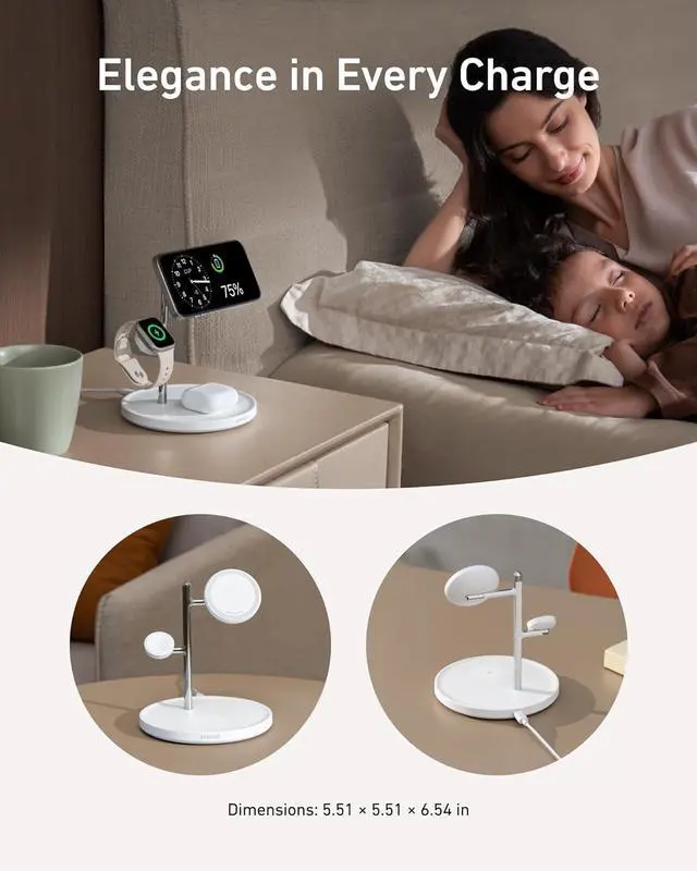 Aesthetic Multi-Device Charging: Embrace aesthetically pleasing design and precise spacing with an innovative tree-like structure allowing seamless simultaneous charging of your iPhone Watch and AirPods.