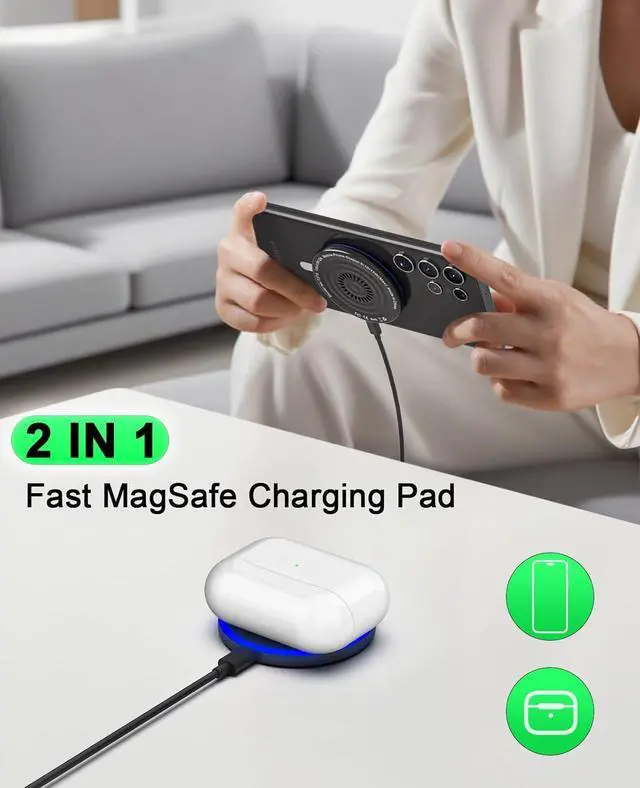 Note: Be must used with a MagSafe/magnetic case to achieve the magnetic effect For stronger attachment we recommend using a MagSafe-compatible case15W Fast Wireless ChargingQuick