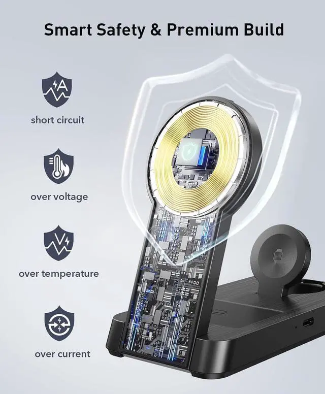 Charger Fast Charging: 1> Fast Charging Charger For iPhone 12-17 (Compatible MagSafe ) & Watch Series 2-10/SE & 2/3/4 Wirelessly. 2> Strong magnetic alignment ensures perfect charging position for iPhone.