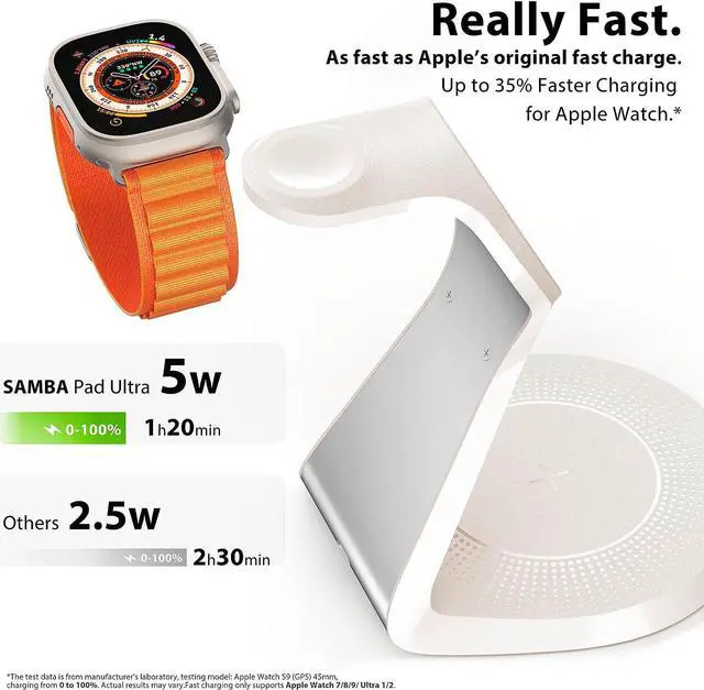 Charging for Watch: Up to 5W Watch charger. Charge Watch 9 up to 80% in just 45 minideal for a fast charge before bed ensuring it's ready to monitor your sleep all nightEasy and