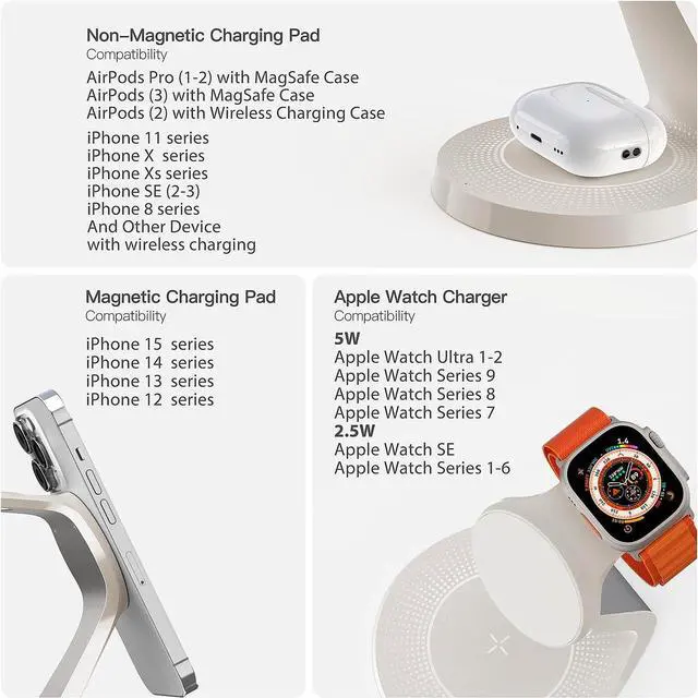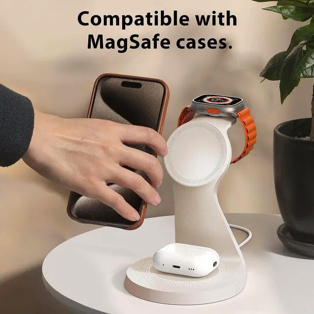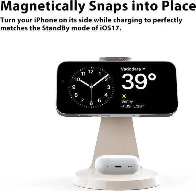 Device: Charge your iPhone Watch and AirPods simultaneously. Eliminate cable clutter and keep your desk organizedFast