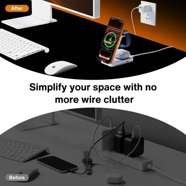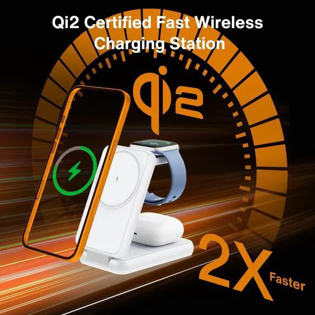 3 in 1 Foldable Wireless Charging StationThis sleek foldable wireless charging station is a game-changer for tech-savvy folks. It powers up your iPhone Watch and AirPods all at once no sweat. Say goodbye to the hassle of tangled cords and messy cables. Your space stays tidy and your digital life stays fully chargedeffortlesslyFast Wireless Charger StandQi2 certified wireless charger can unleash true 15W high-speed charging for iPhone a reliable 2.5W for your Watch and a steady 3W for your AirPods. Each device charges independently without interference offering a seamless unified charging experience.