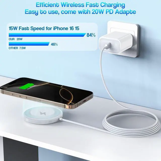 Charging for iPhone17/16]: Put your iphone 17 Air on the magnetic charger pad use the 15W charger block charging your iPhone 3X faster than the other iPhone charger supports 5W 7.5W 10W and Max 15W wireless charging Charge your iPhone 16 from 0 to 100% in 2- 2.5 hours.