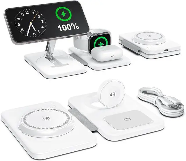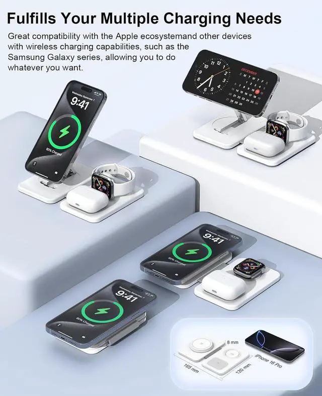 Magnetic AlignmentSecure & Stable Charging: Built-in powerful N54 magnets and compatible with MagSafe charger The foldable charging pad's strong magnetic suction ability allows your device to be easily aligned with the charging area