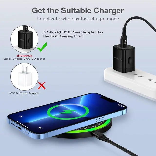 Multi-Certified & Safe Charging: The galaxy z flip 7 fe 7 6 z fold 7 wireless charger pad comes with 18W Quick Charge 3.0 Adapter. This Galaxy S25 edge S24 fe ultra wireless charging pad wall charger with smart IC-chip design which provide multi-protection system against over charging over-voltage over currents and short-circuit. So you can rest assured when you charge your devices. 15W cargador inalambrico iphone is safe for you and your family.