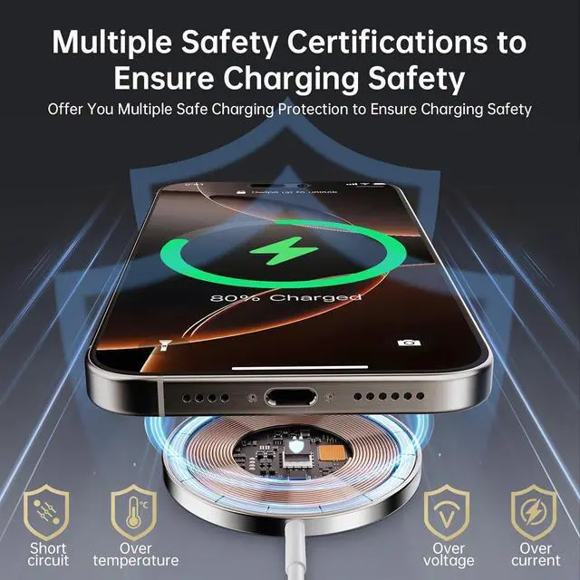 Mag-Safe Wireless Charging: A cutting-edge wireless charger designed specifically for iPhone. Precision magnets attach to your device for fast and efficient charging ensuring that your device is always powered up quickly and easily with the latest technologyCompatibility: The magnetic wireless charging pad is compatible with iPhone17/16/15/14/13/12/Pro/Plus/Pro Max 13/12 mini and Air Pods Pro/3/4 and 2 models. Charger is compatible with Qi charging technology for wireless charging of iPhone 8 or newer and AirPods models with wireless charging casesCompact and