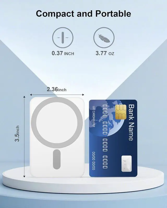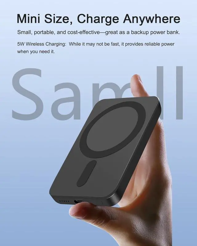 Ultra-Light & Slim Design: This mini portable charger is just 0.55 inches thick and about the size of a credit card making it incredibly easy to slip into your pocket down. Weighing 0.24 lbs its the perfect companion for short trips and parties. Small portable and cost-effectivegreat as a backup power bank. While it may not be fast it provides reliable power when you need it. It is compatible with iPhone 17/16/15/14/13/12. For other models a magnetic phone case is required.
