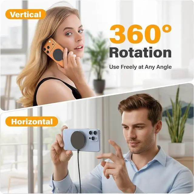 USB-C/A Dual Ports Included: Equipped with both USB-C and USB-A cable options for flexible charging setups. Use with laptops desktop adapters or travel chargers with ease. Fully compatible with iPhone 17/16e/16/15/14/13/12 series AirPods 4/3/2 Pro3/2/1 Google Pixel 10 series (Qi2 magnetic) and Galaxy S25 series with Qi2 Ready cases. Extra-Long Cable for