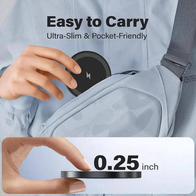 Ultra-Slim & Pocket-Friendly Design: Only 0.2 in thick this slim disc charger slips easily into your pocket purse or laptop sleeve. A perfect travel companion for daily commutes or weekend getaways. Lightweight & Pocket-Sized for
